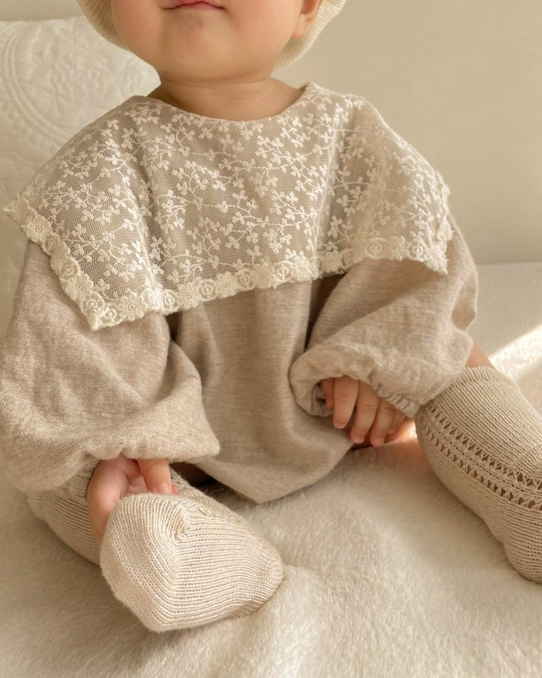 長袖カラーネップボンネ付ロンパース