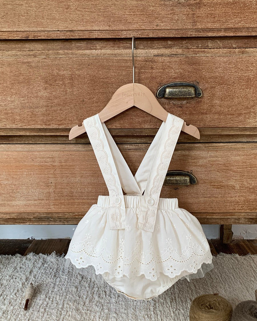 フラワー刺しゅうスカートロンパース