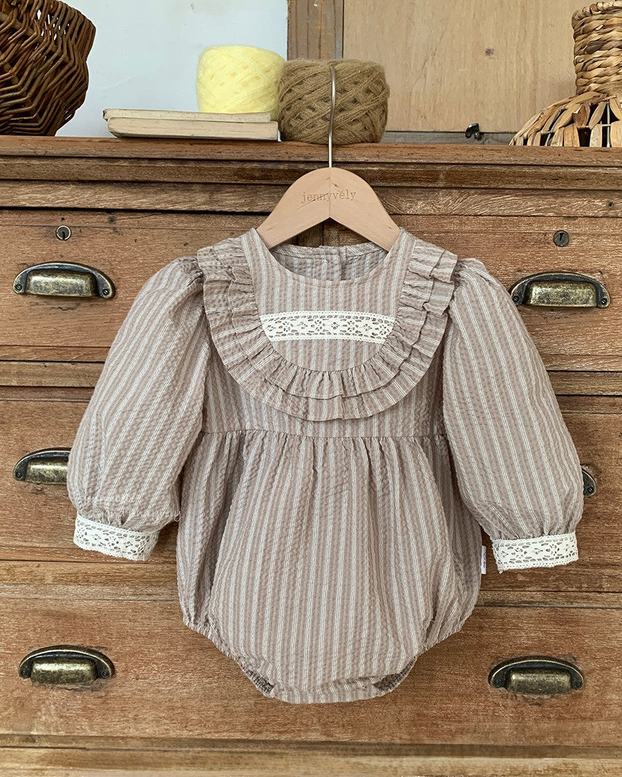 フリルビブストライプロンパース