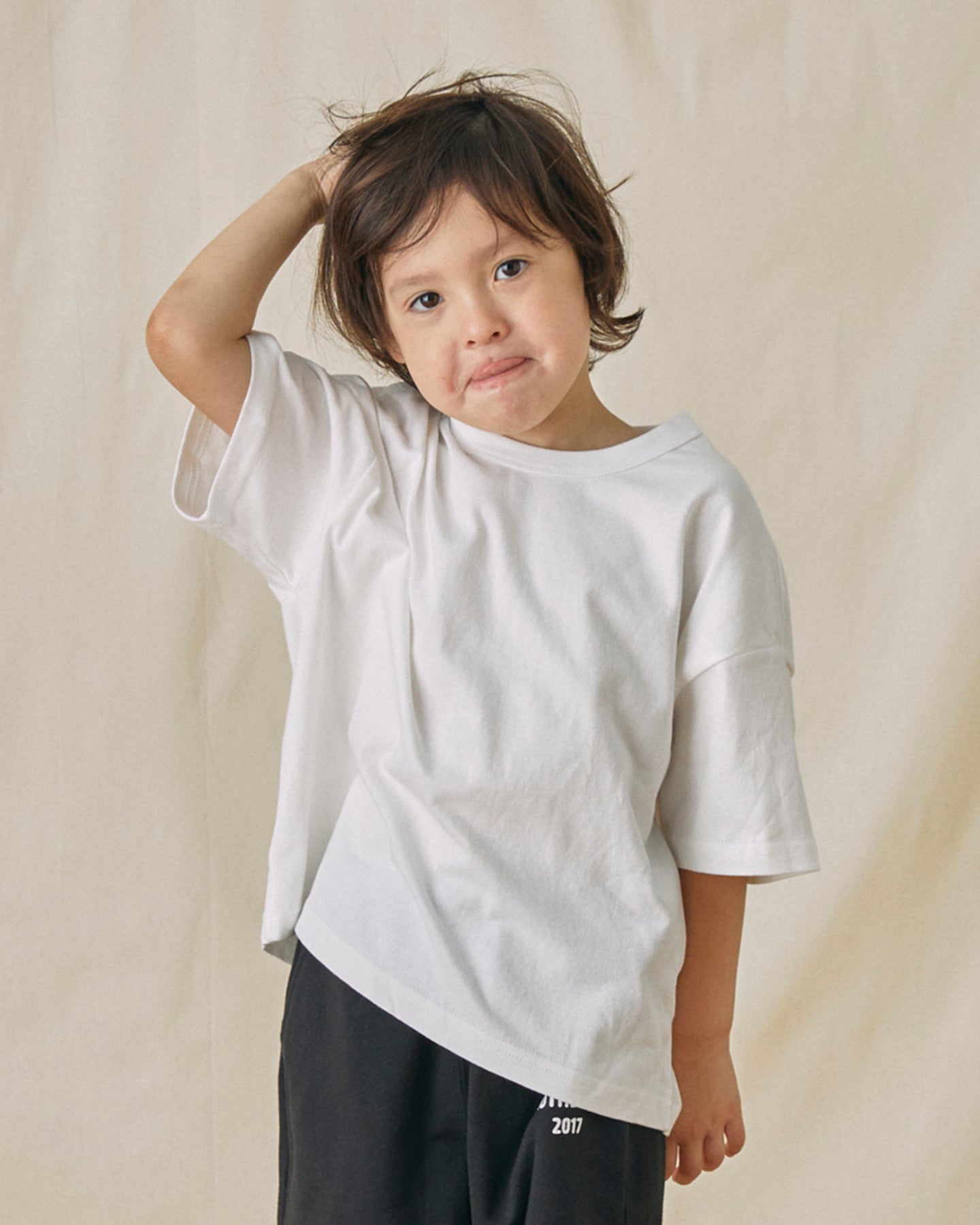 オーバーなサイズ感がかわいいシンプルTシャツ。